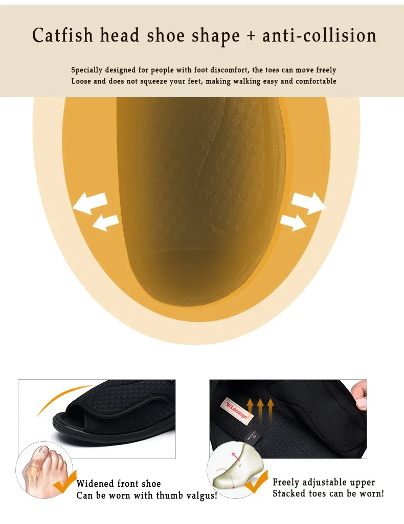 Adjustable Elderly Non-slip Soles Open-toe Diabetic Widened Shoes Feet Swollen Fat Deformation Slippers Thumb Valgus Care Shoes