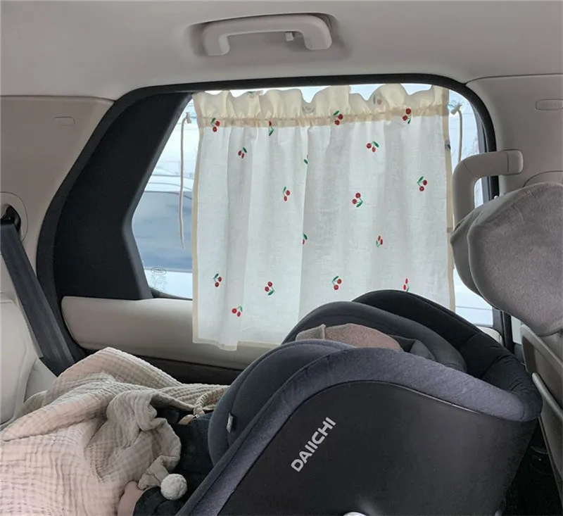 Cute Baby Car Curtain Cotton Sunscreen Cloth Embroidery Sunshade Children Sun Protection Window Curtain UV Protection for Kids