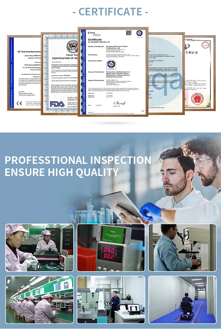 A: We provide 1 year free warranty for wheelchairs & scooters by non-human factor. You just need to send us pictures or videos of the damaged parts, then we send new parts or compensation to you.