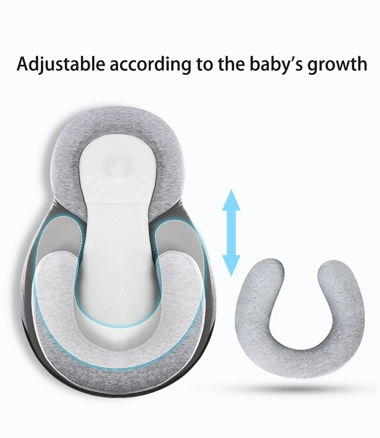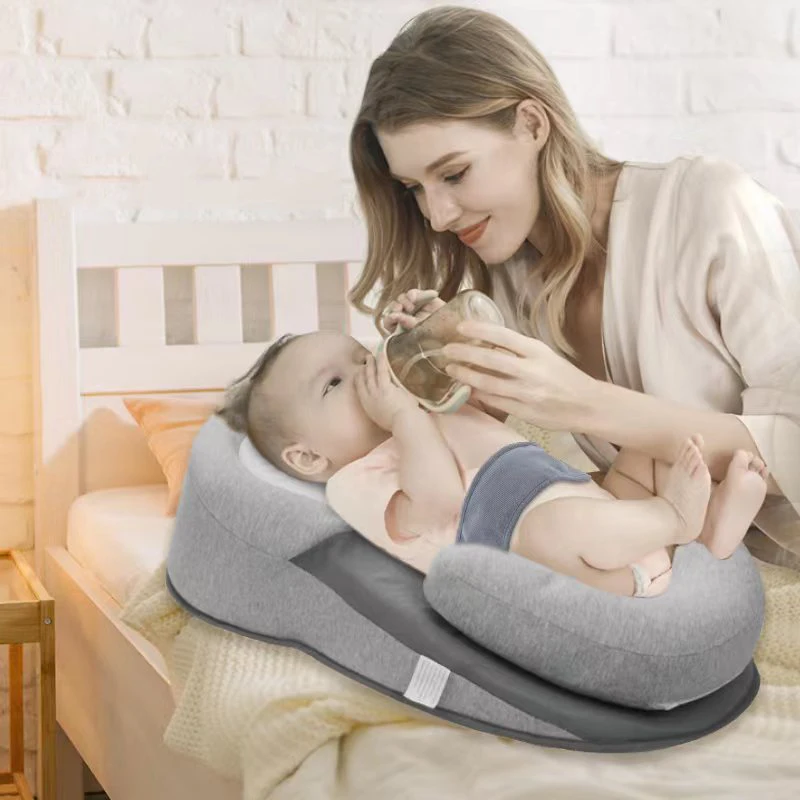 Grey Infant Baby 15 degree angle Slope Head Shaped Pillow Detachable Newborn Feeding Device Feeding Ramp Pad Rollover Prevention