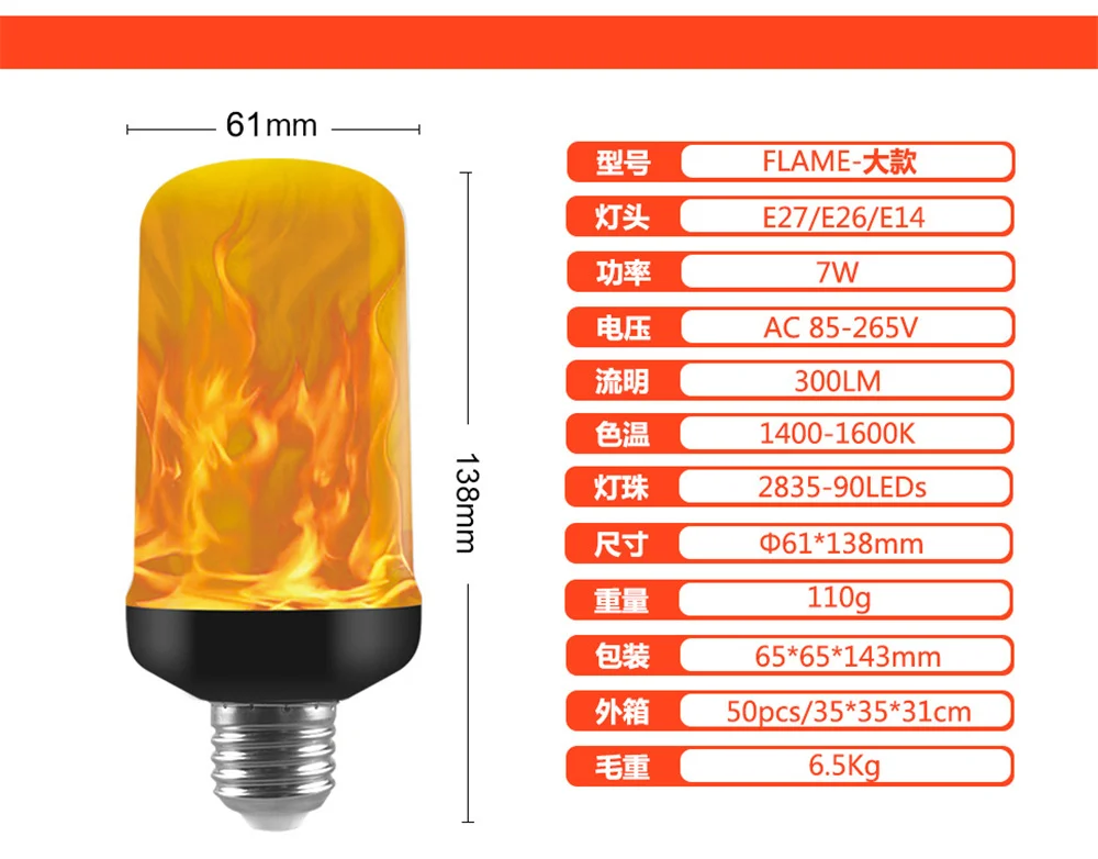 Usage Recommendation, In order to obtain better flame flickering effect, please install the bulb in frosted glass lampshade, lantern, salt lamp, etc. Artificially vivid flames, dynamically moving the flames, simulating a natural flame flashing flame