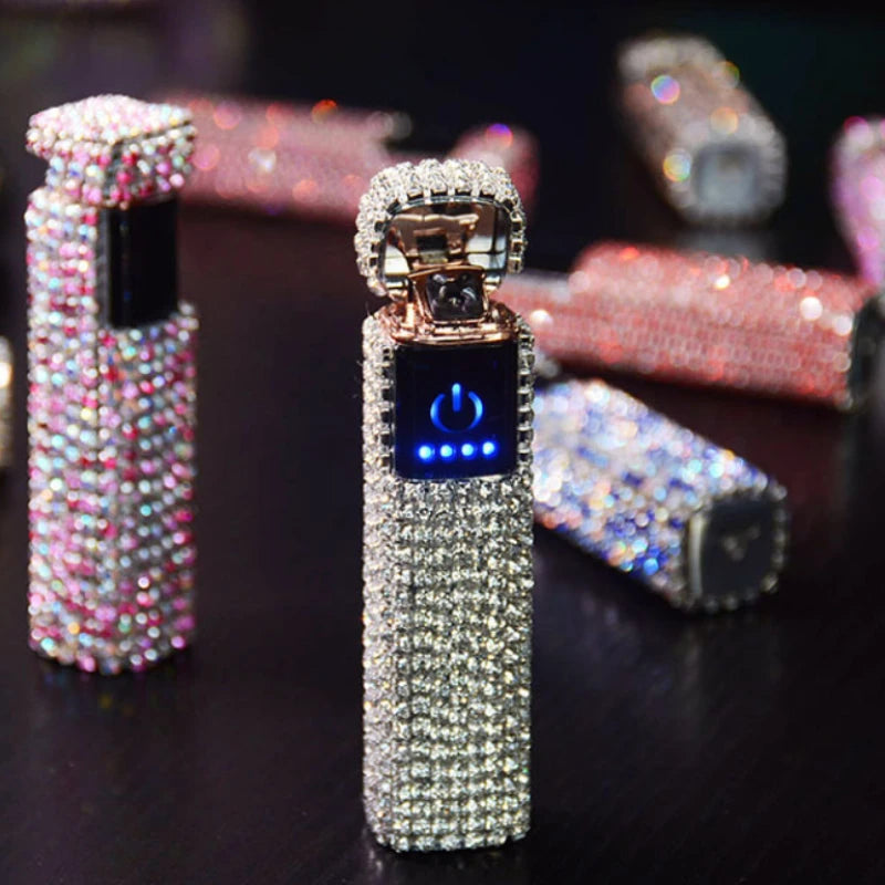 New Cute Fashion Rhinestone Lighter Portable Induction Touch Screen Rechargeable Lighter Smoking Accessories Ladies Gifts