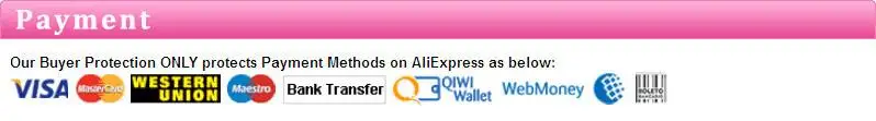 1) We accept Alipay, West Union, TT. All major credit cards are accepted through secure payment processor ESCROW.